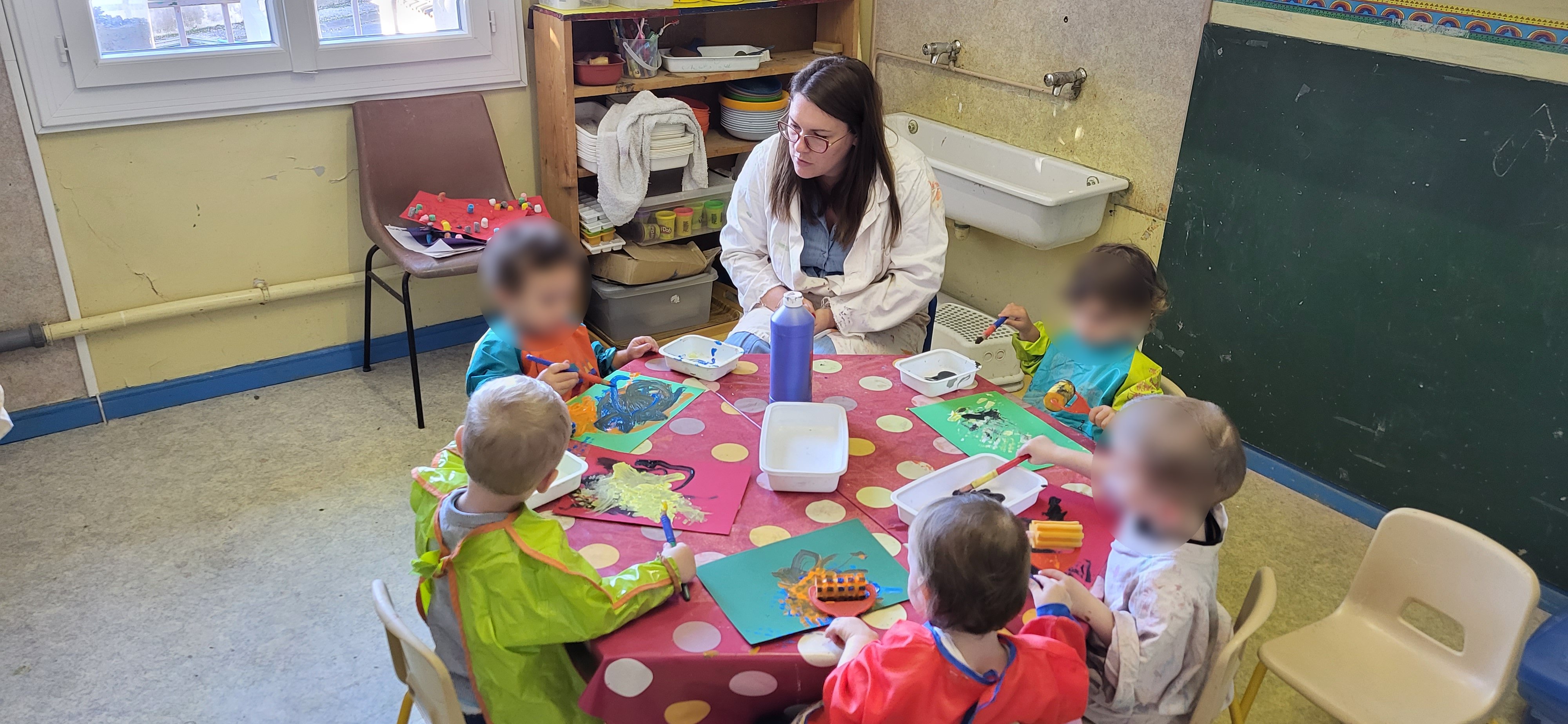 De la peinture pour le groupe des grands avec Sylvanie